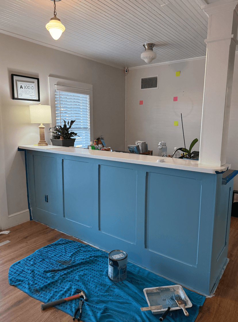 First round of paint on the front desk!