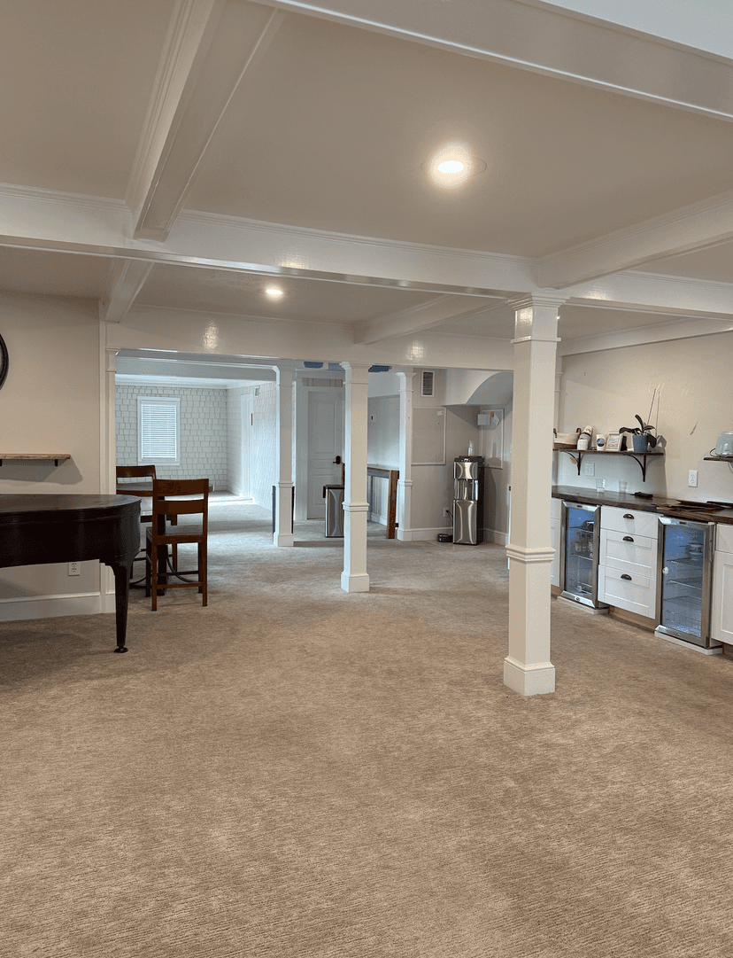 Our next unsuspecting painting victim, the beams in the first-floor lounge. Mitch gets all the credit for this idea. We're still deciding which color to paint them...which one is your favorite?