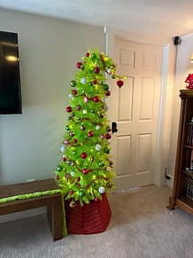 Jason said is, “we are going to have to buy all new trees at FULL price!” Little did he know I started scanning FB marketplace back in August looking for deals. Funny enough, we found most of our trees & decorations from vintage sales and thrift stores(maybe a few from Amazon too). For me there is something special about buying an item that has a story. I imagine our trees and decorations were once a part of a family’s Christmas, it’s nice knowing they will continue to bring joy in the years to come. I think Katie and Mitch thought I was nuts when I said we are putting a tree in every guest room. I wanted guests to come and feel like they were at home, what’s more special than waking up to twinkling lights on a Christmas tree?